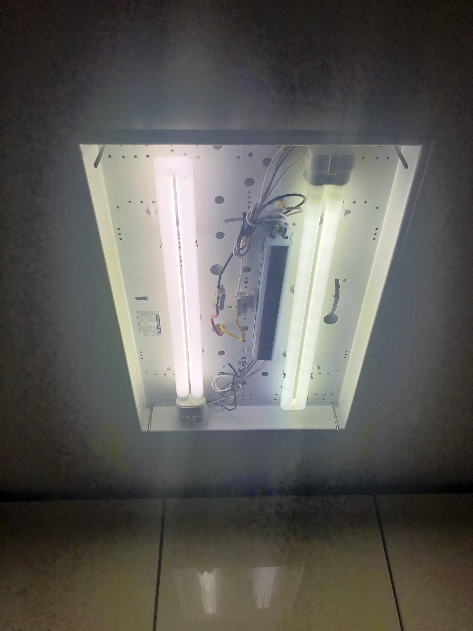 4. [녹색 부분] 형광등을 떼면 보이는 나사와 안정기의 나사를 십자 드라이버로 뺀다.